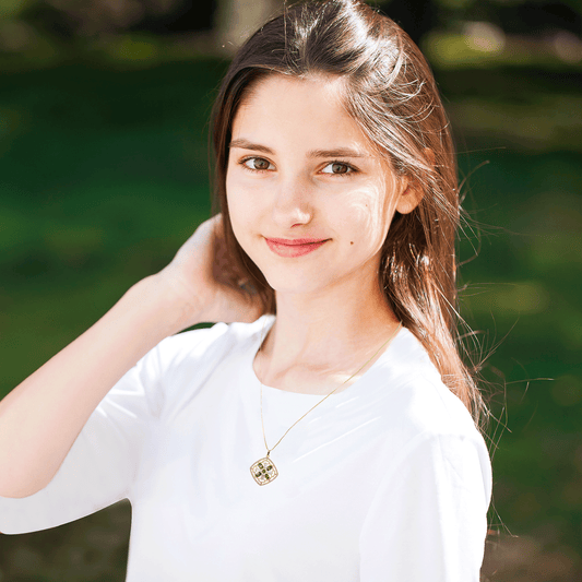 Gold Plated Diamond Shape Pendant with Green Rhinestones