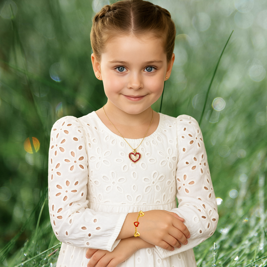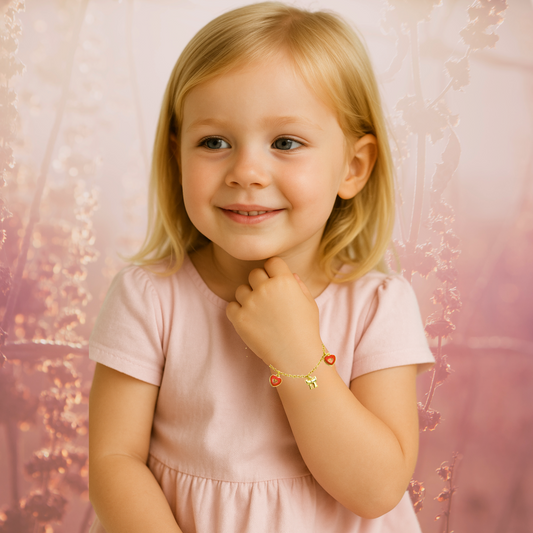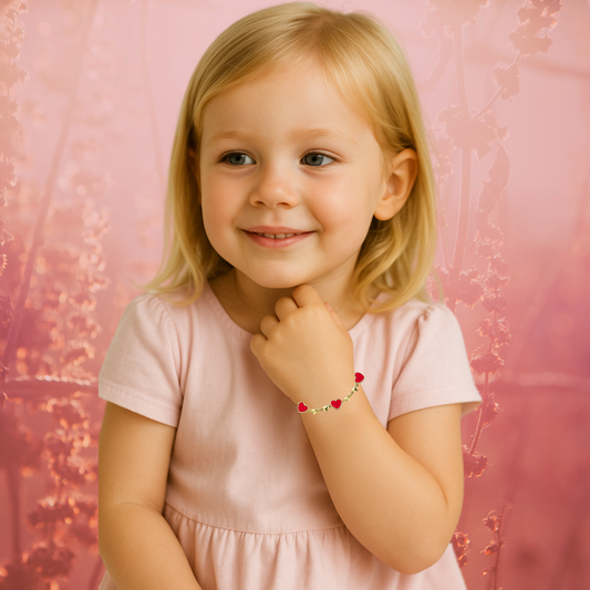 Gold Plated Red Hearts Satelite Chain Bracelet
