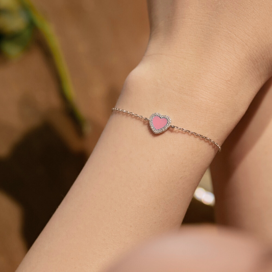 • Gold Plated Paperclip Bracelet with Heart Charm (Center)