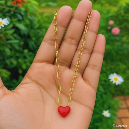 Gold Plated Red Enamel Heart Necklace with Crystal Rhinestones