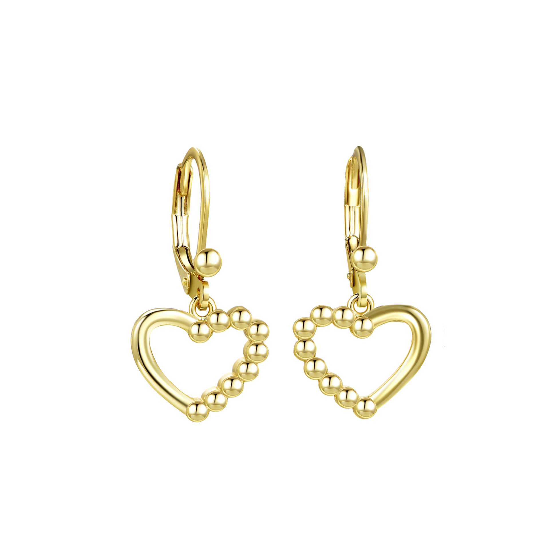 Hypoallergenic gold plated surgical steel girls drop earring with leverback. Length 1", Leverback height 1/2", Heart .4"