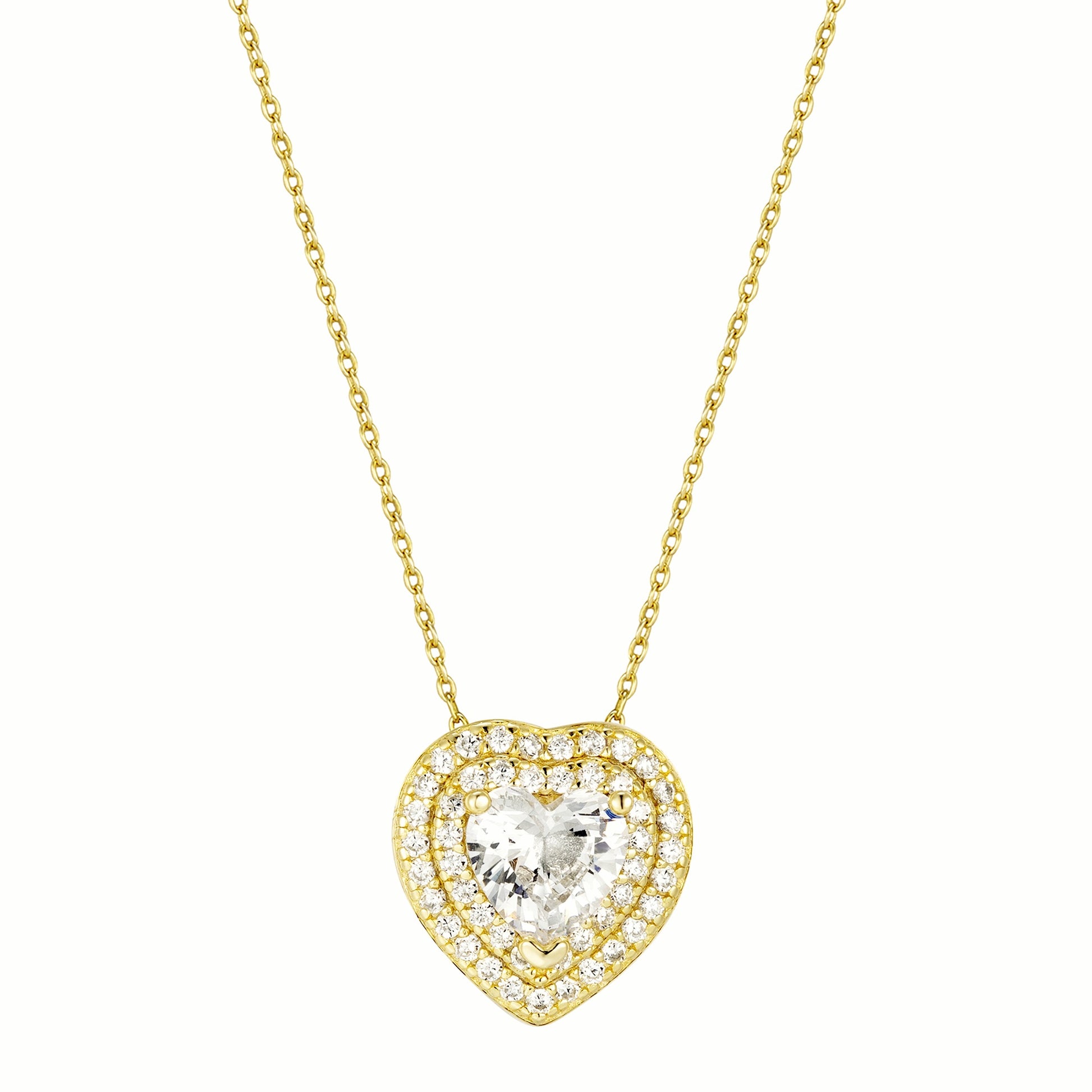 Sterling Silver, gold plated. Chain 16" plus 2". Heart 1/3", protective coating