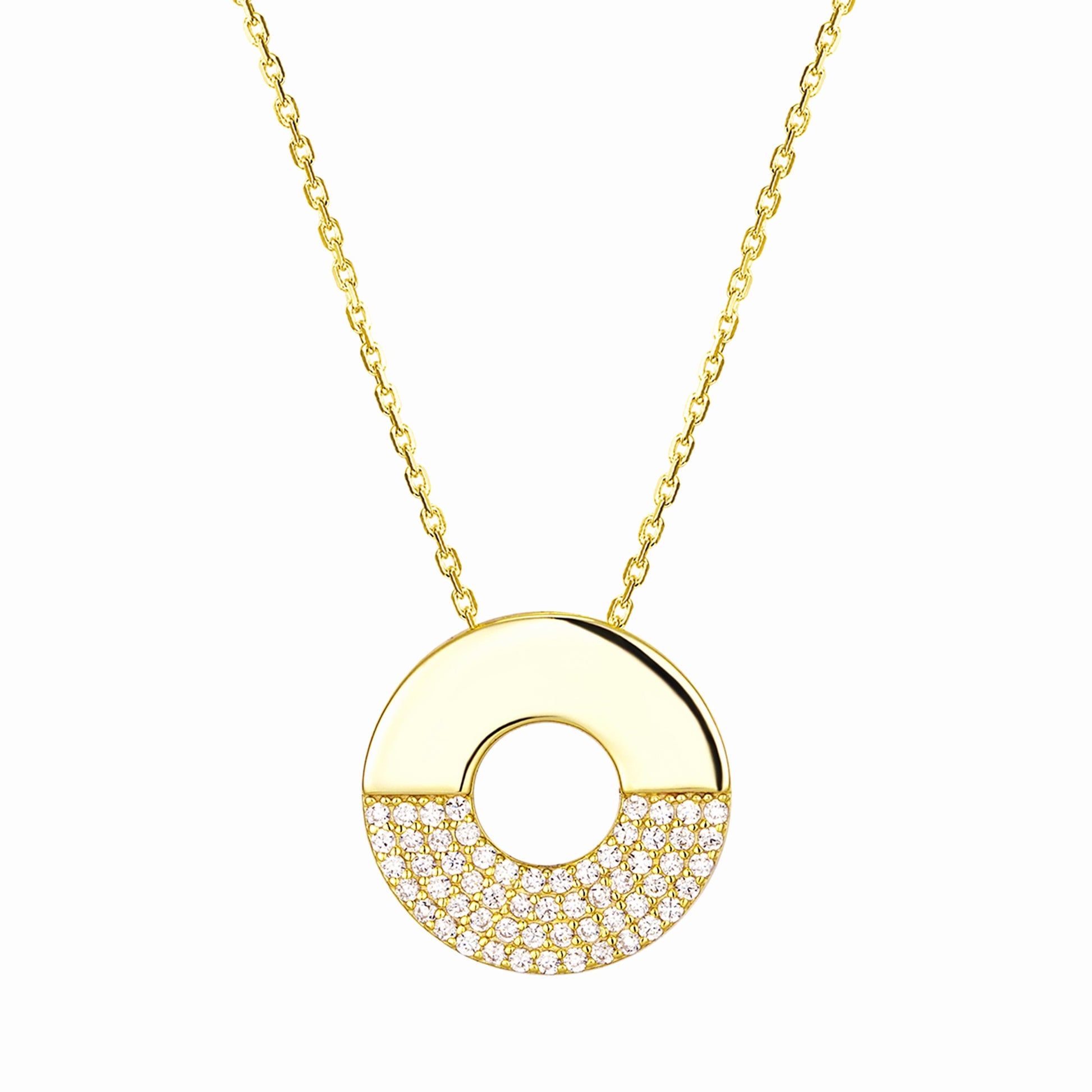 Sterling Silver gold plated with pave stones . Chain Length 16" plus 2". Disc 3/4"